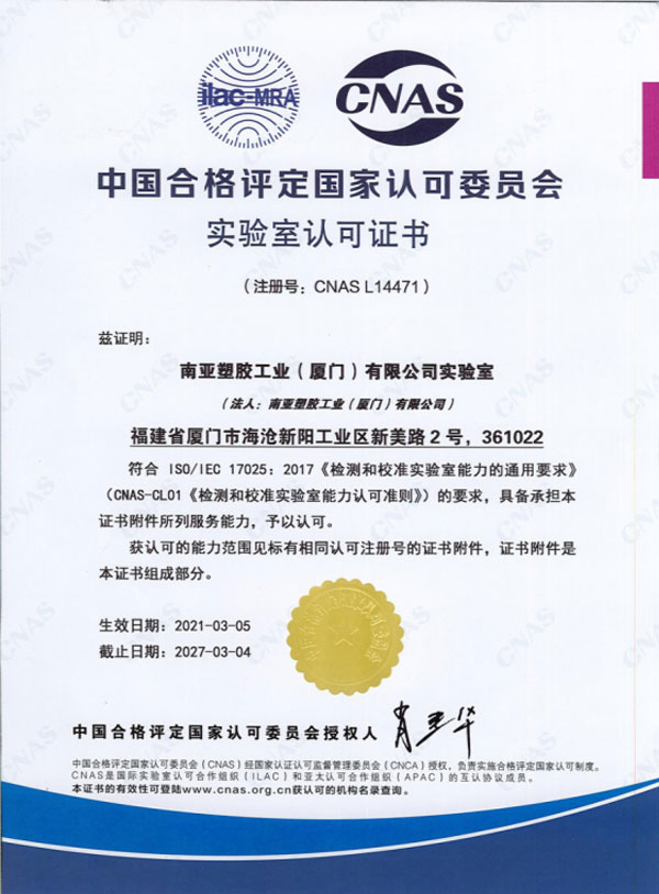 臺(tái)塑南亞擁有先進(jìn)的生產(chǎn)加工設(shè)備以及實(shí)驗(yàn)室設(shè)備,并被國(guó)家塑料質(zhì)量檢測(cè)中心認(rèn)可。